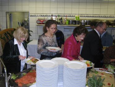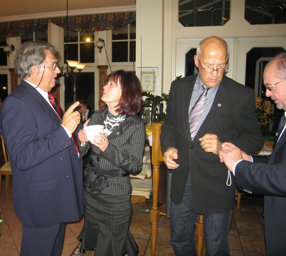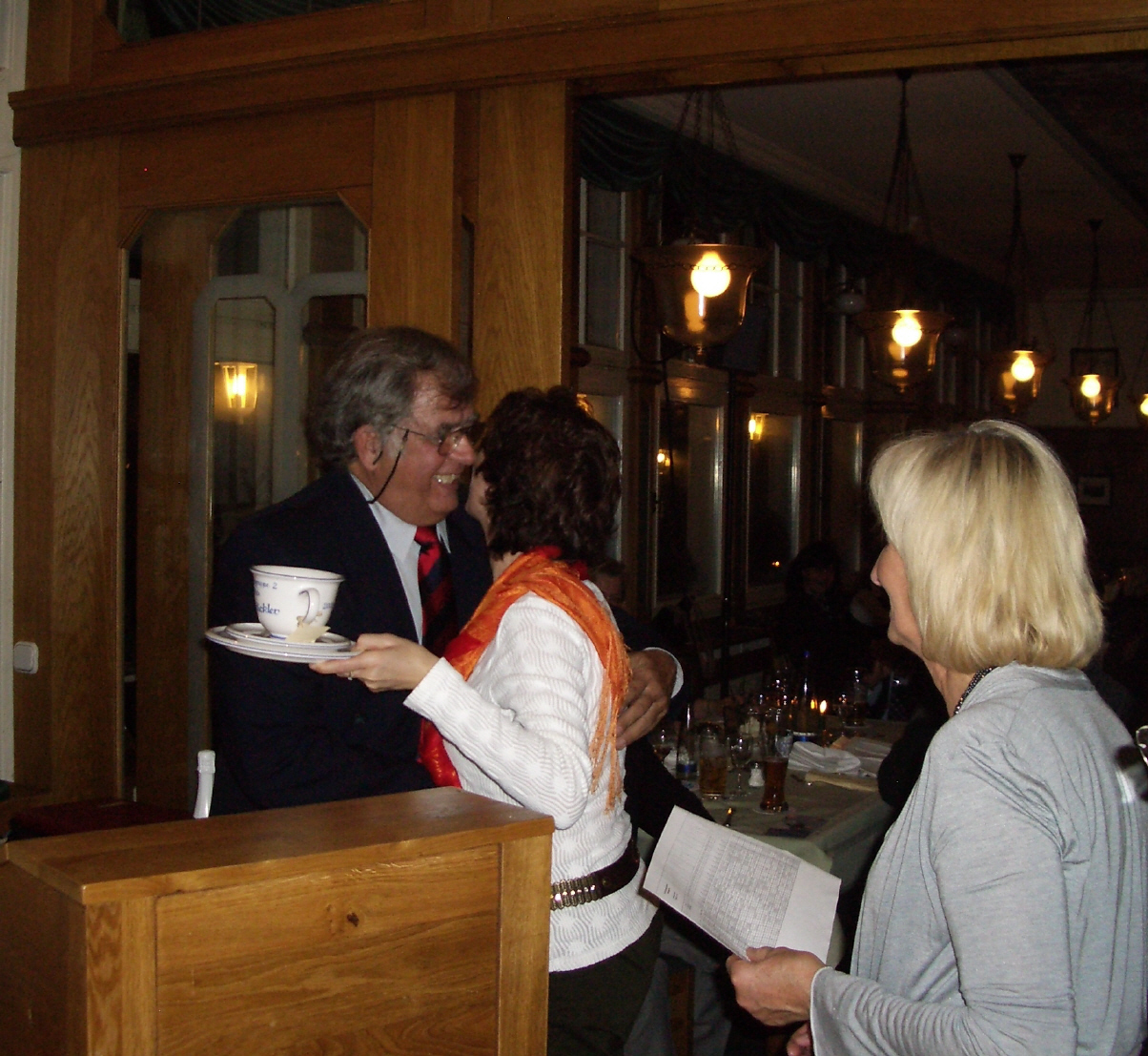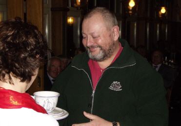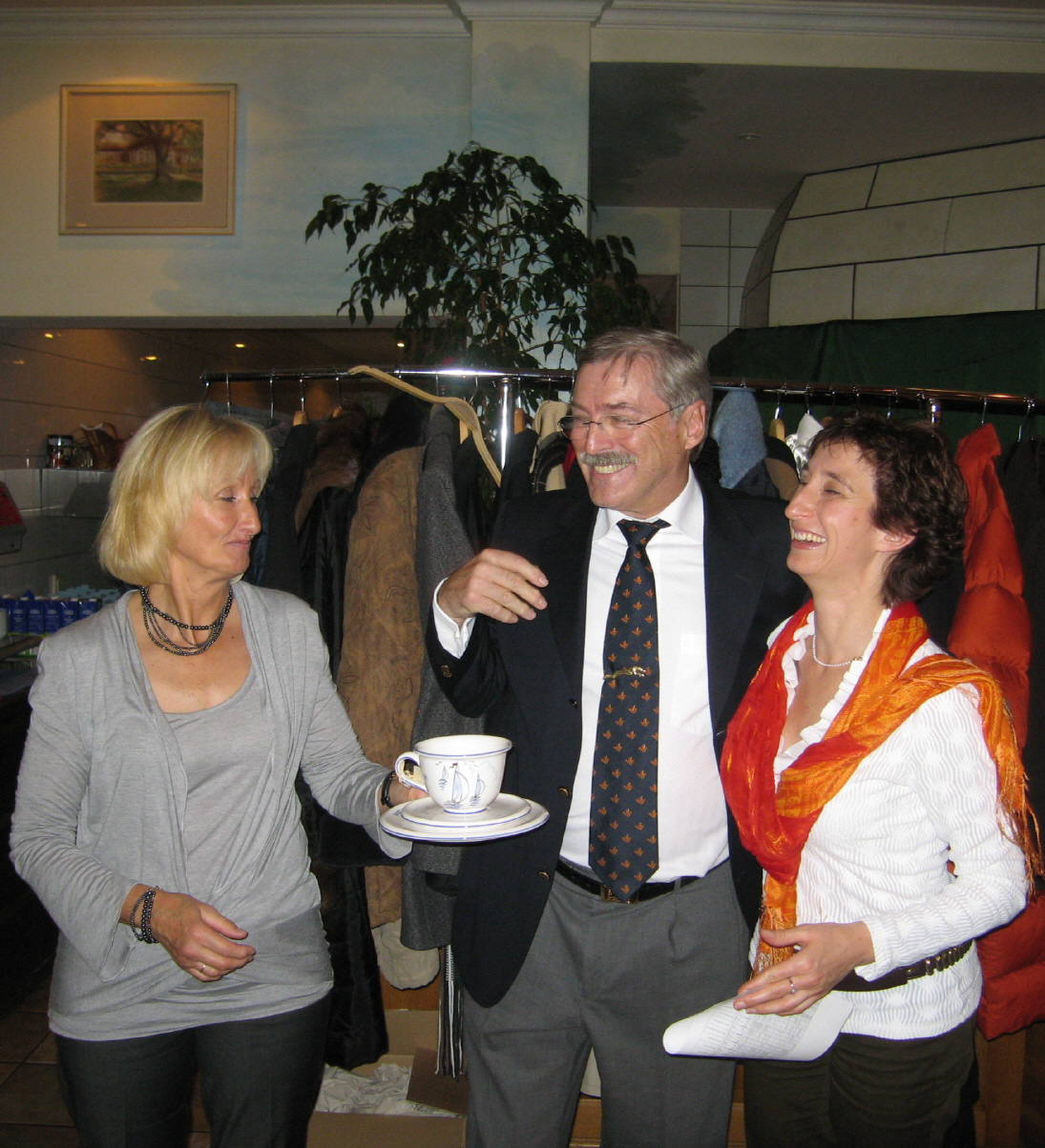Frau Stahnke (Sponsor A.W. Niemeyer) spendet für die kommenden kalten Monate Trost in Form eines Sherry (in den Hals) und eines Schals (um den Hals) |