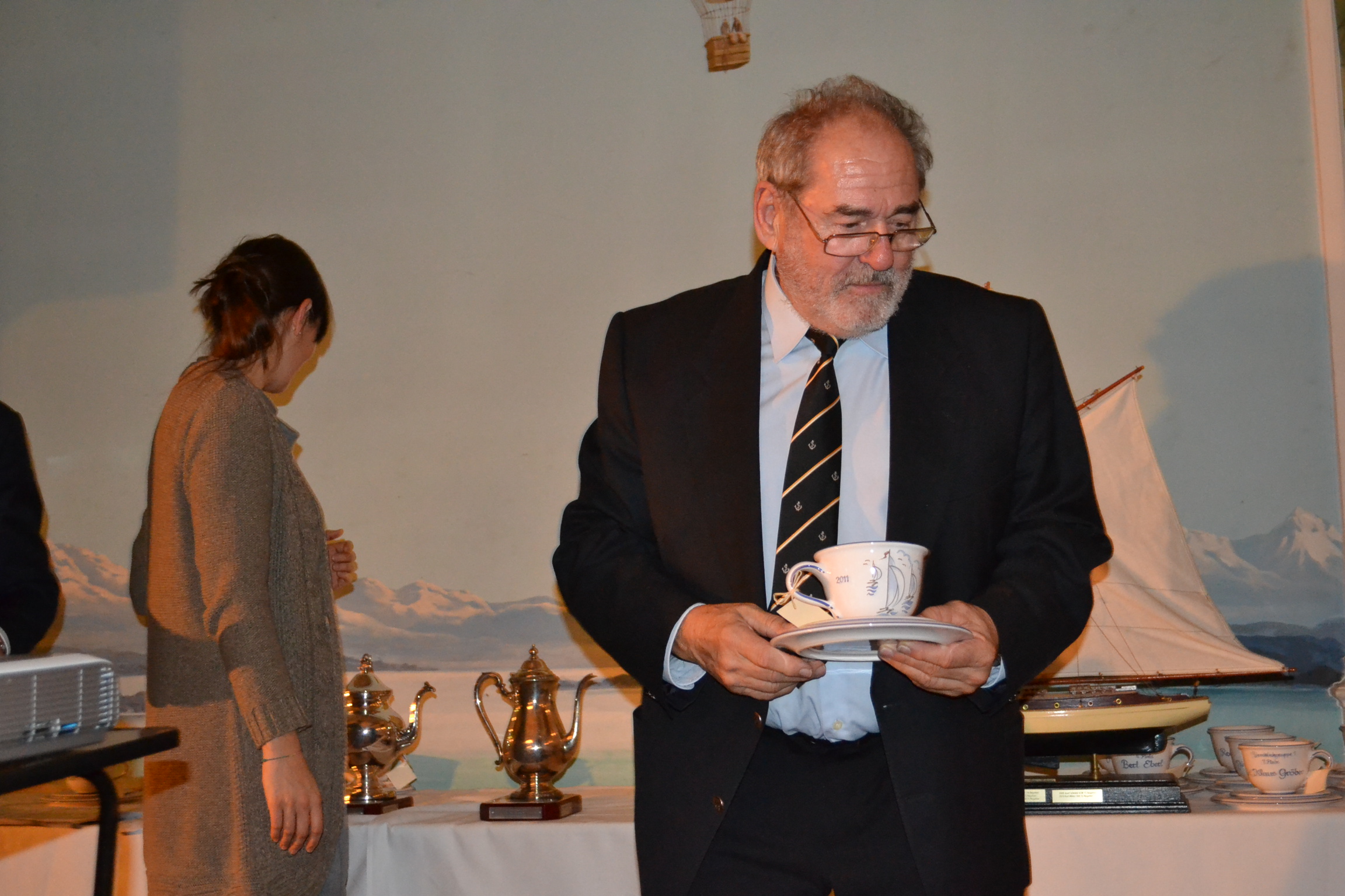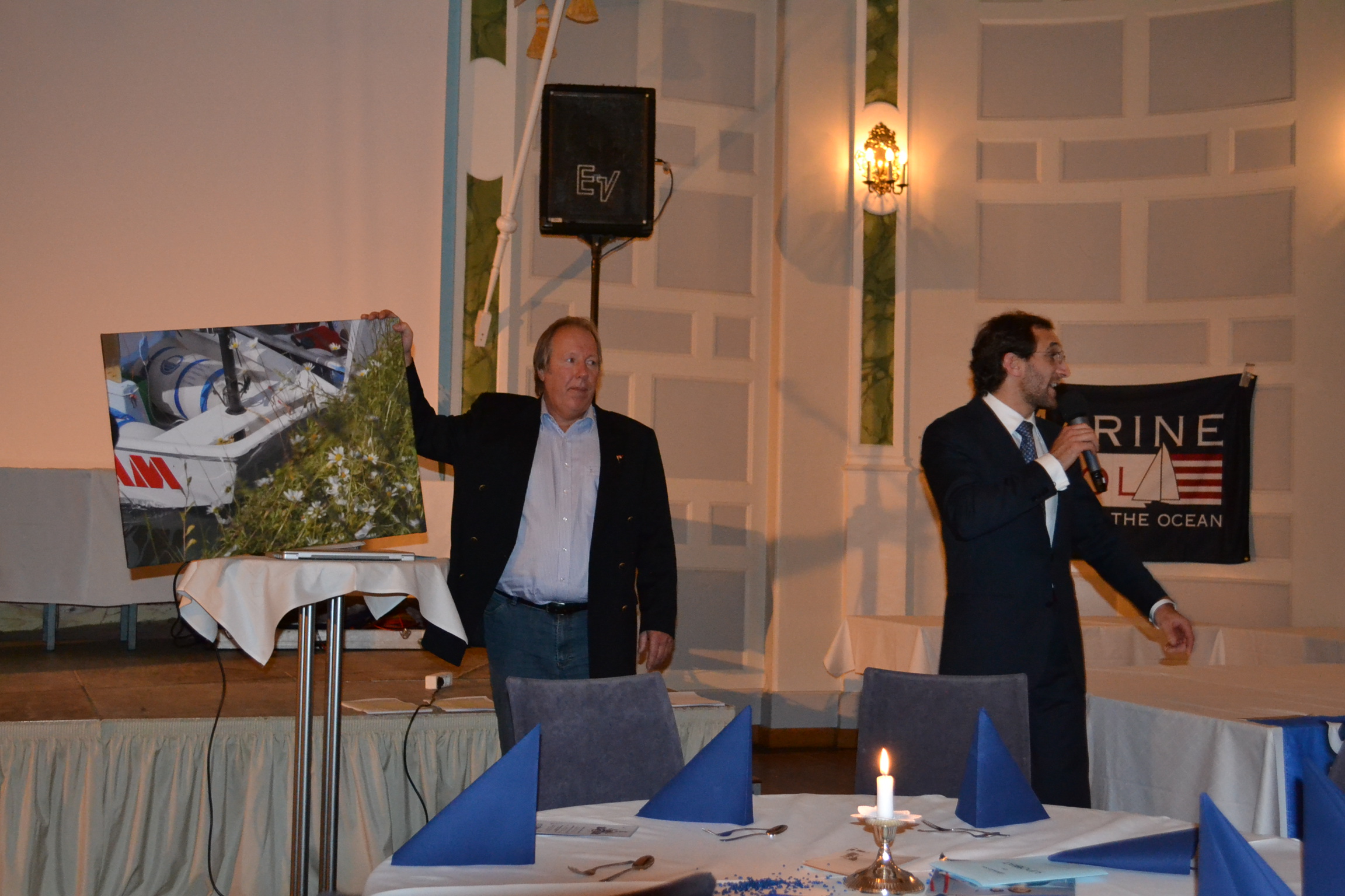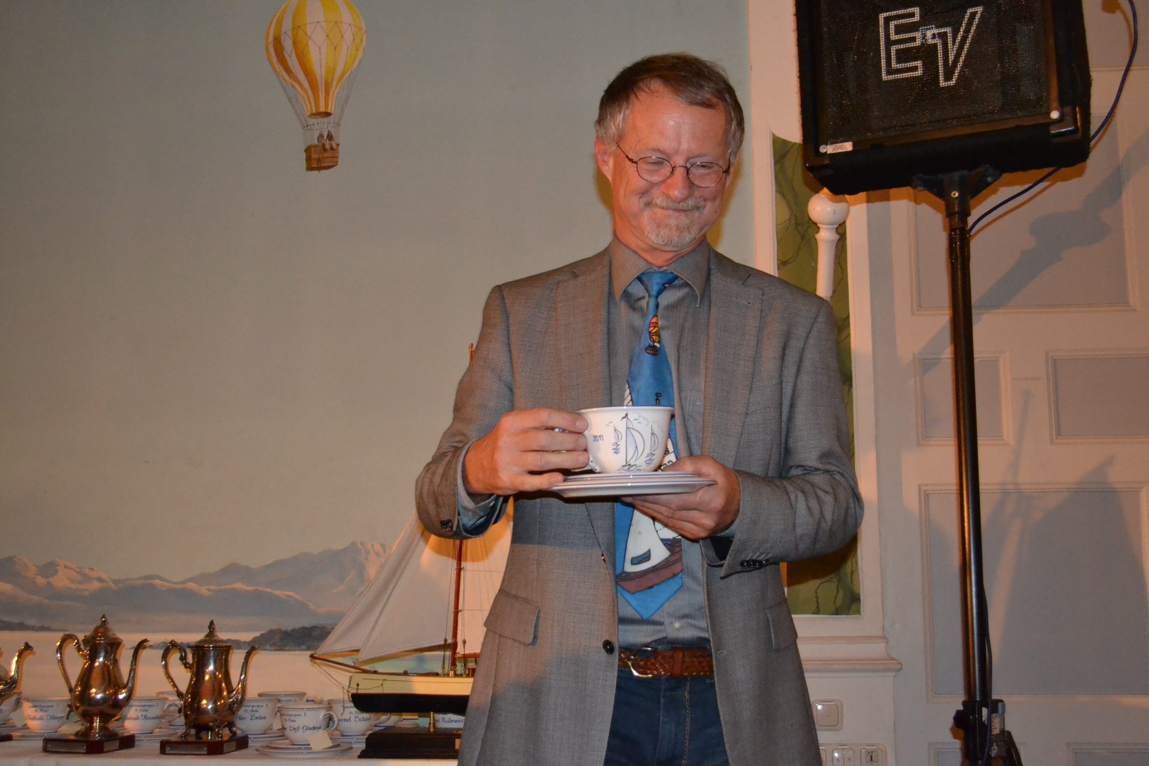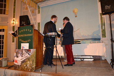 Michael Willberg zeigt Türn-Bilder vom 2010 ersteigerten Schiff der Firma Sun Charter, die auch in diesem Jahr wieder diesen Preis gestiftet hat. |
