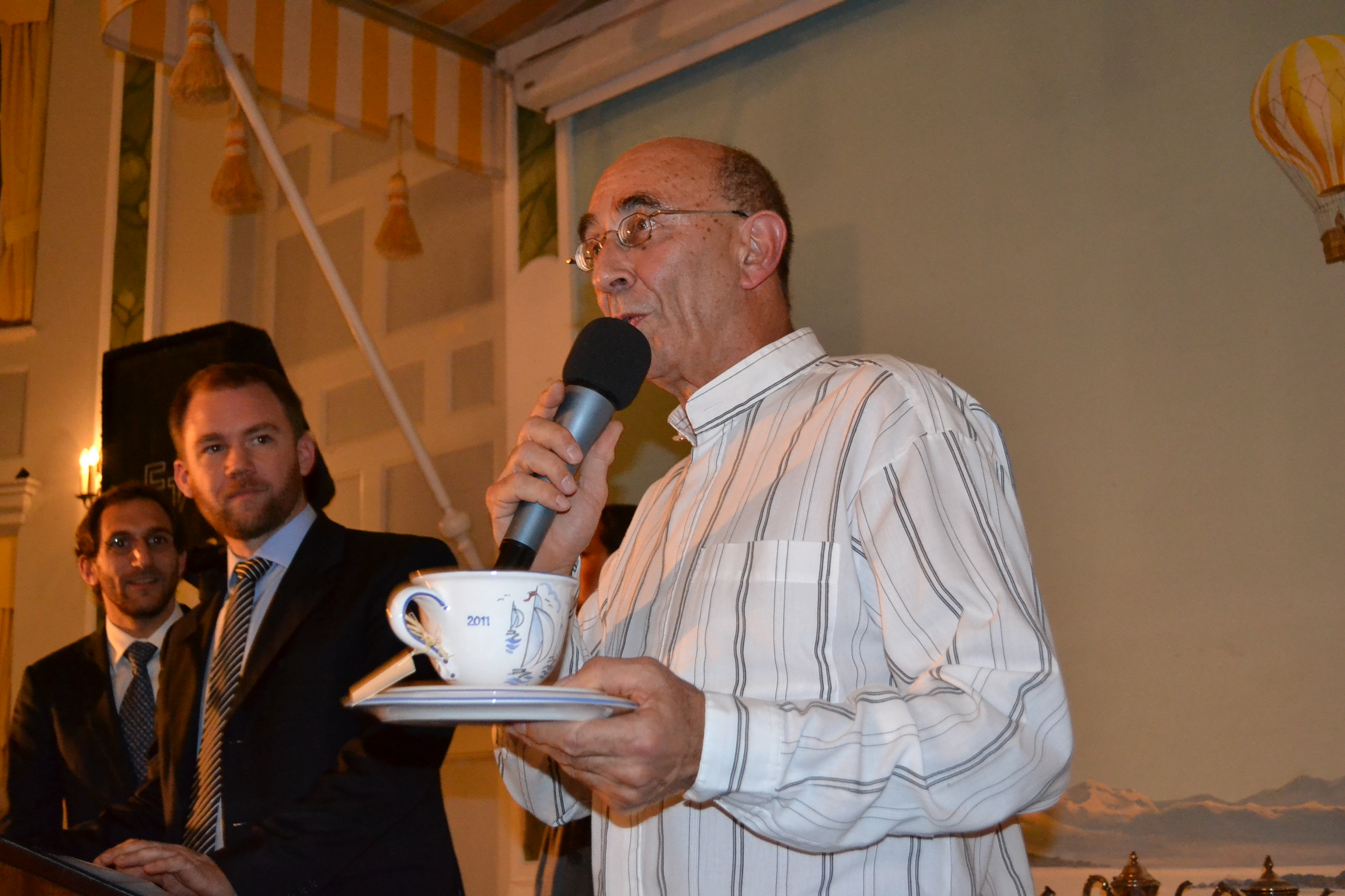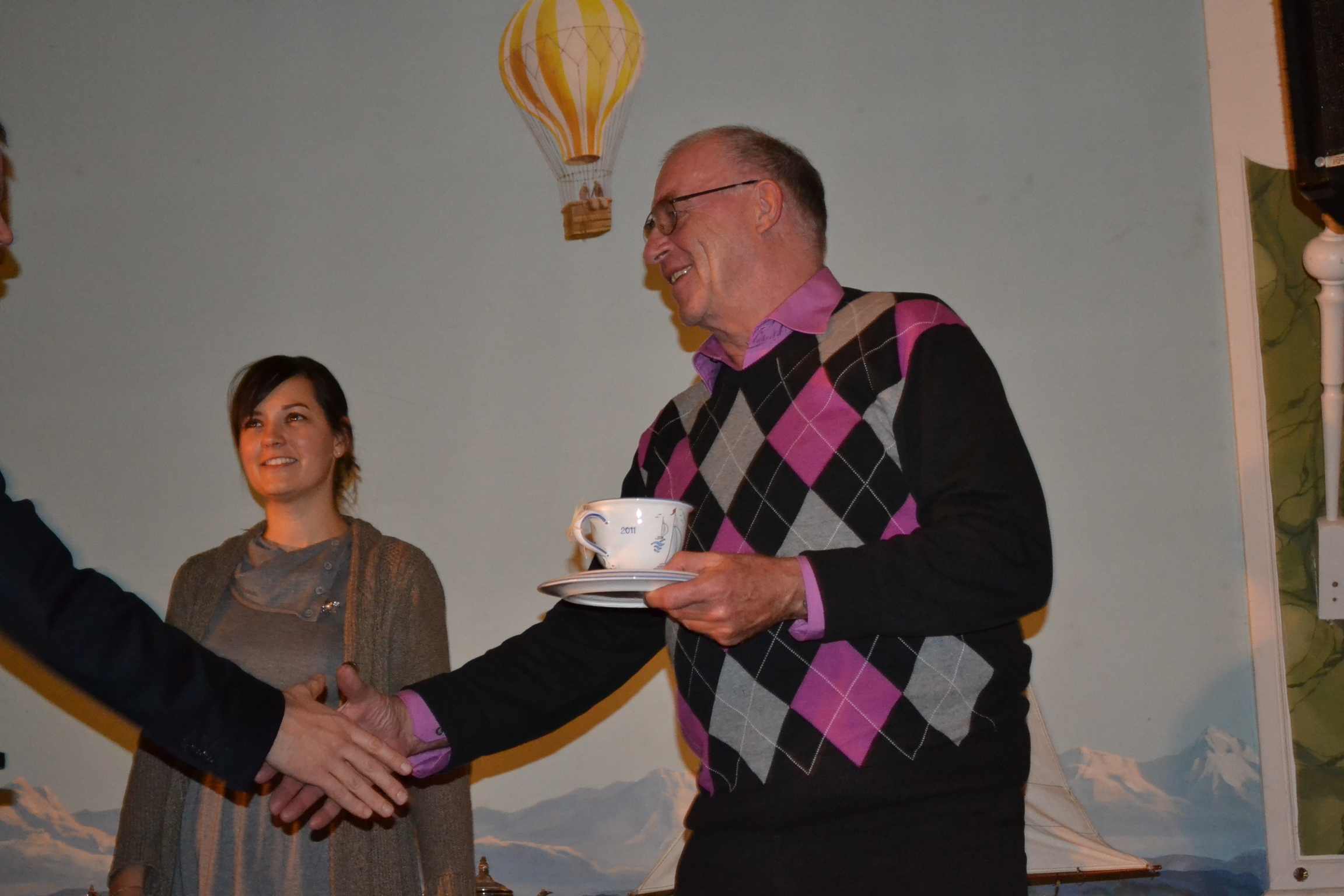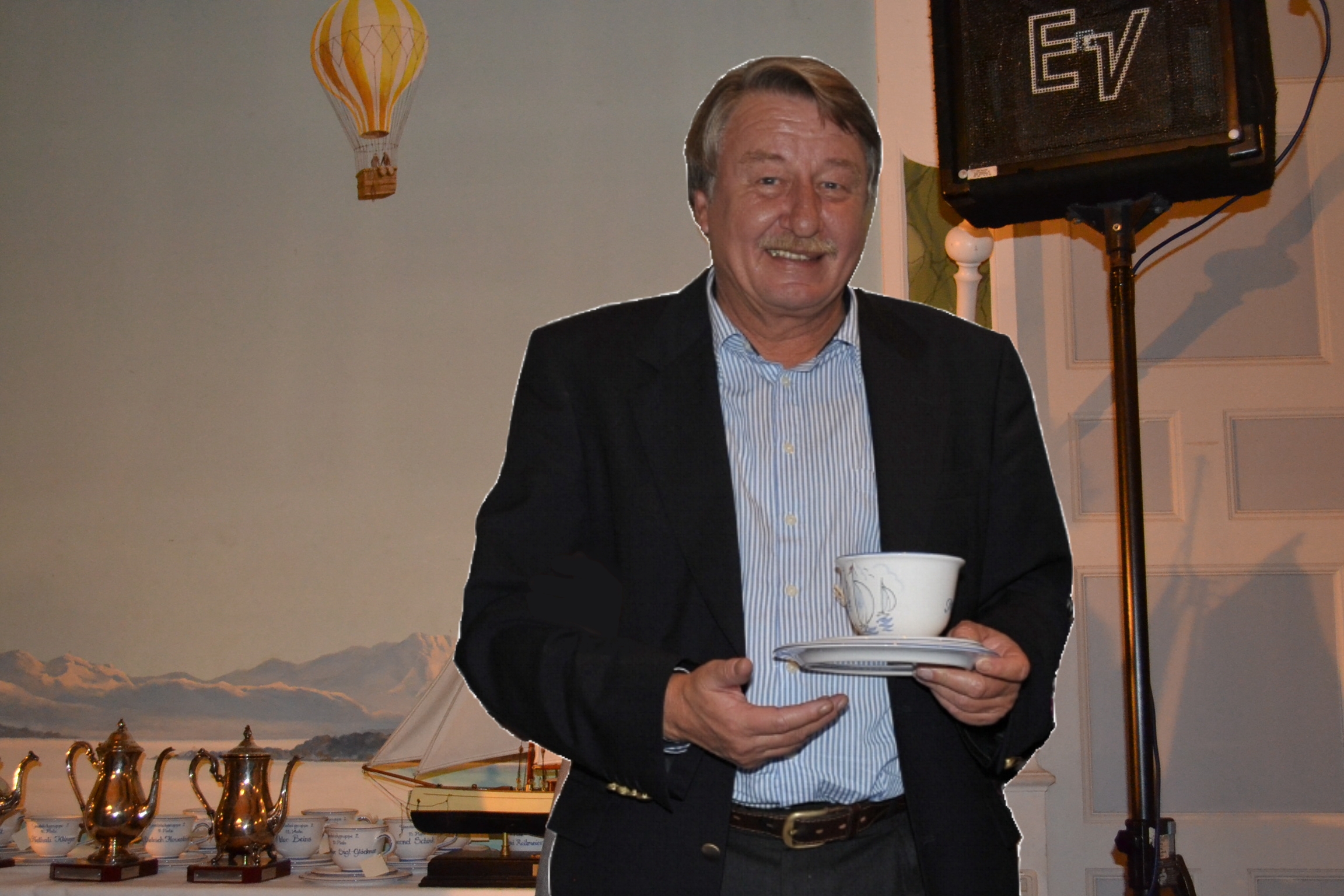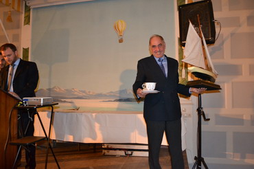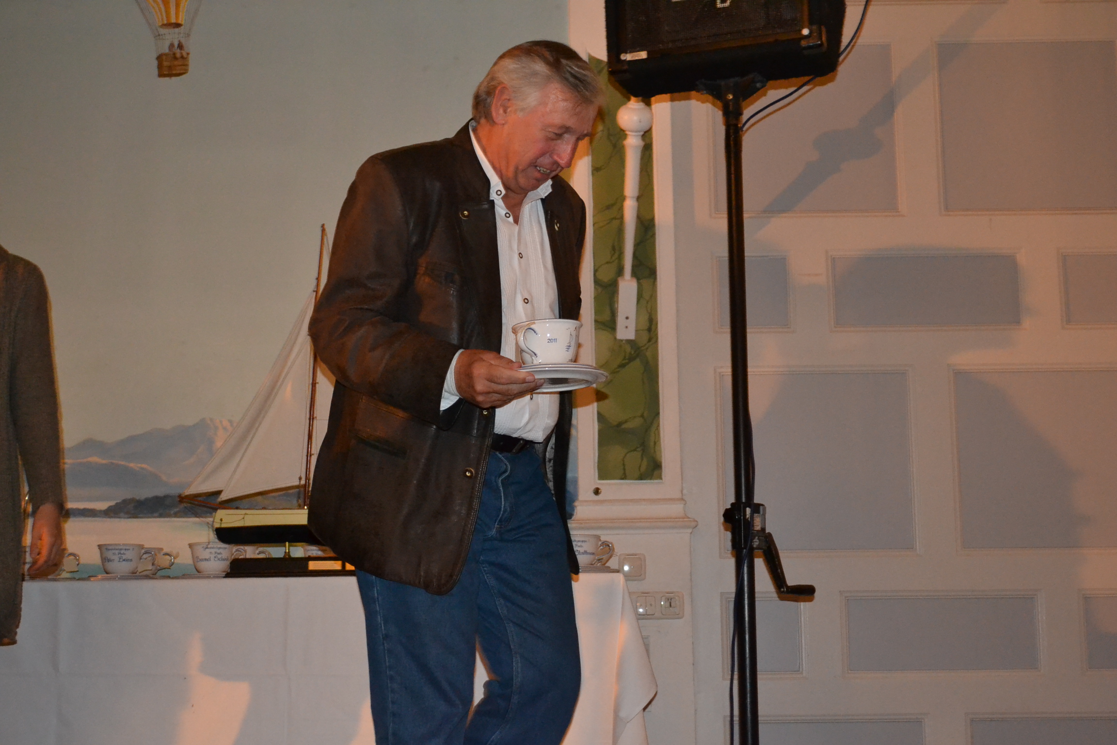Michael Willberg zeigt Türn-Bilder vom 2010 ersteigerten Schiff der Firma Sun Charter, die auch in diesem Jahr wieder diesen Preis gestiftet hat. |