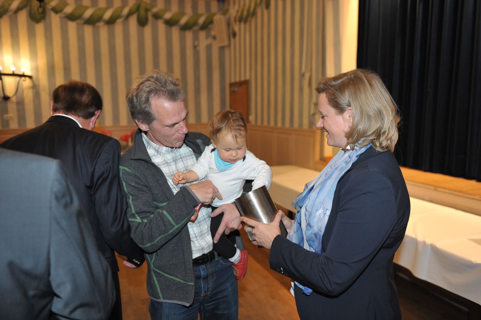 Heiner Müller mit Seglernachwuchs, der das große Los für die Tombola ziehen darf