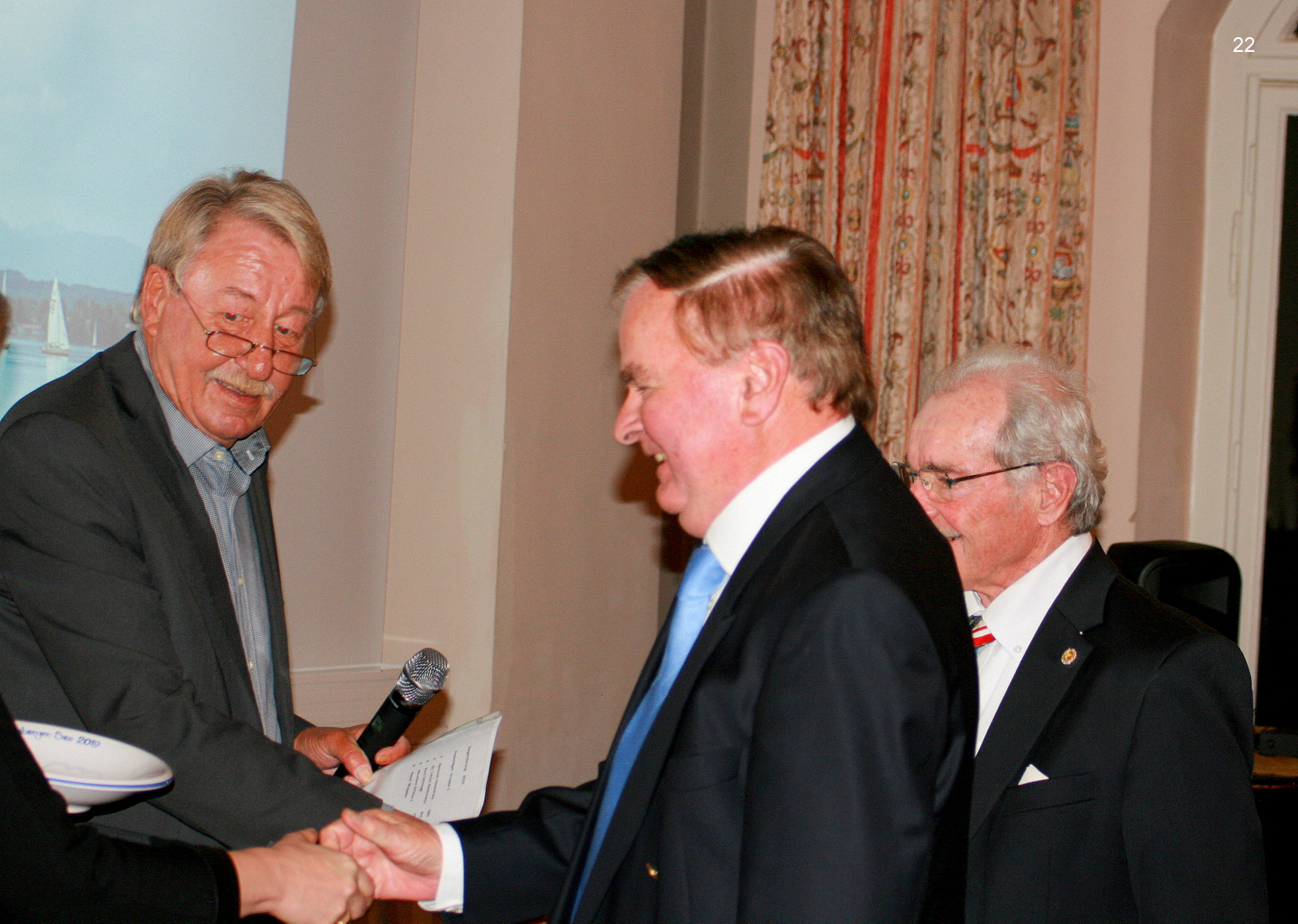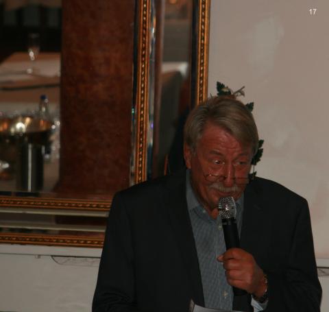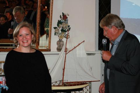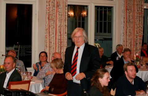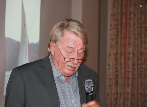 Bevor Hans Stickler den von der Fa. Sun Charter gespendeten Gutschein mit einem Wert von 1 000 € für einen Segeltörn im Mittelmeer versteigert, wirbt auch er um Kandidaten für die nächstjährige YKSS-Vorstandswahl.