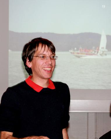 Das Mitglied im Yardstickausschuss Tobias Burnus erhält Applaus dafür, dass er das Seemeisterschaftszwischenergebnis laufend aktualisiert.