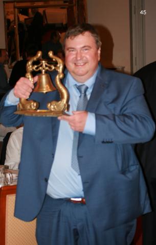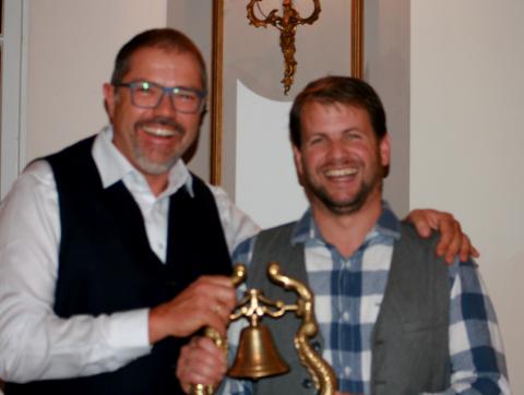 Matthias Bell sieht man an, wie ungern er den Wanderpreis für den fleißigsten Segler hergibt.