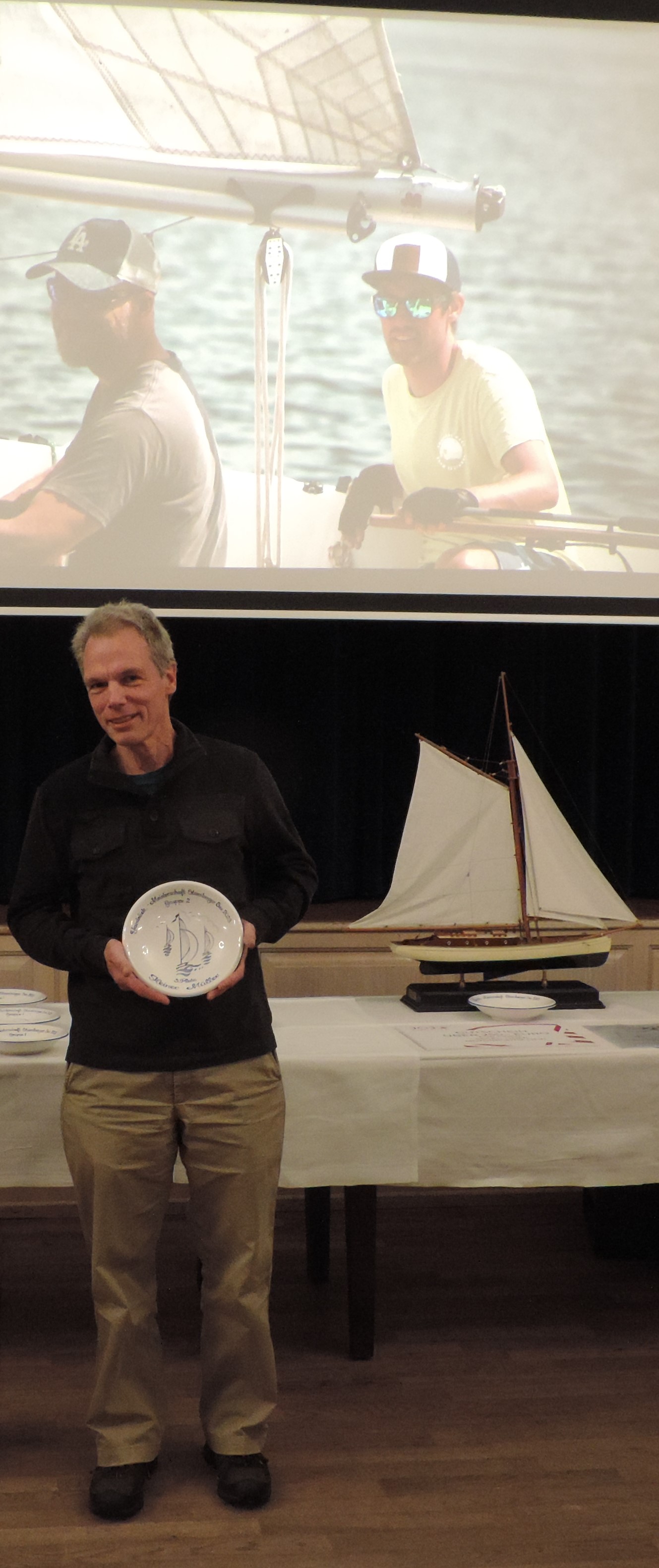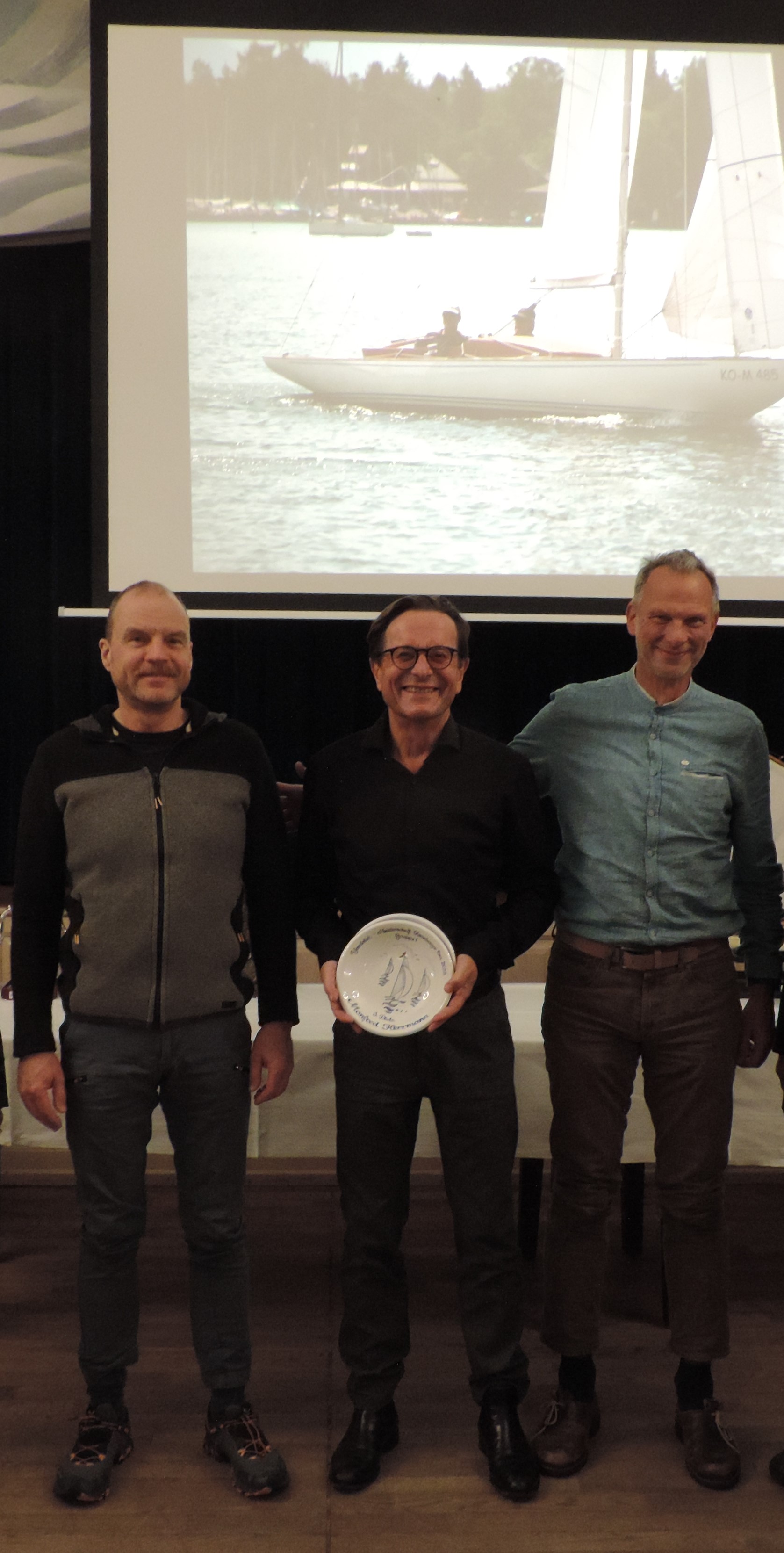 Andreas Gärtner vom YCSS investierte seine Zeit in eine Regatta mehr, also in 6 Regatten und belegte mit seiner Int. 806 in der Gruppe 2 Platz 5. Da mussten die preisverteilenden YKSS-Vorstände schon genau hinschauen, wer den Preis denn eigentlich gewonnen hat. |