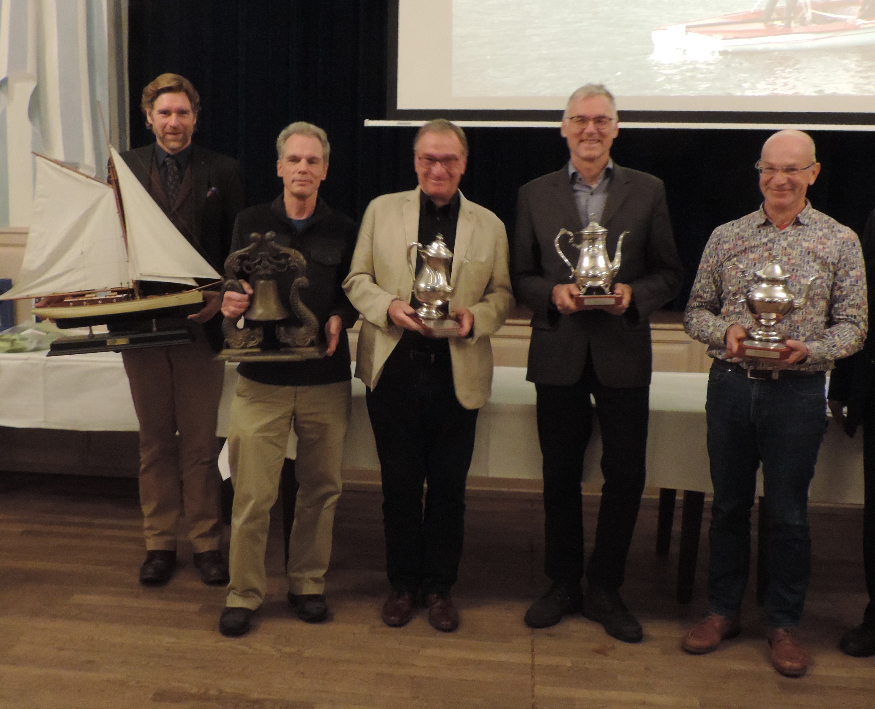 Nicolaus Articus vom DTYC als fleißigster Steuermann, Heiner Müller mit dem vom YCSS gewonnenen Preis für die Vereinswertung, Uwe Pofandt vom SVOS als Seemeister in der Gruppe 2, Dr. Ulrich Reithmann vom BYC als Seemeister in der Gruppe 3 und Hans-Jörg Schäffer vom DRS als Seemeister in der Gruppe 1.
