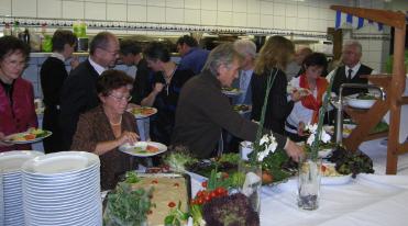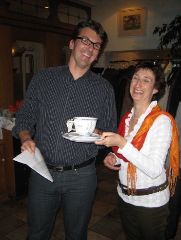 Frau Stahnke (Sponsor A.W. Niemeyer) spendet für die kommenden kalten Monate Trost in Form eines Sherry (in den Hals) und eines Schals (um den Hals) |