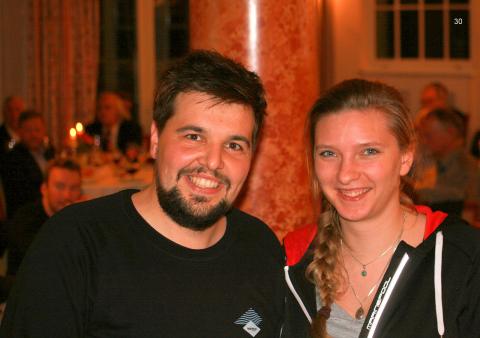 Die Vorstände Katharina Nicolait und Matthias Bell treffen die letzten Absprachen vor dem Beginn der Seemeisterschaftsfeier 2019.